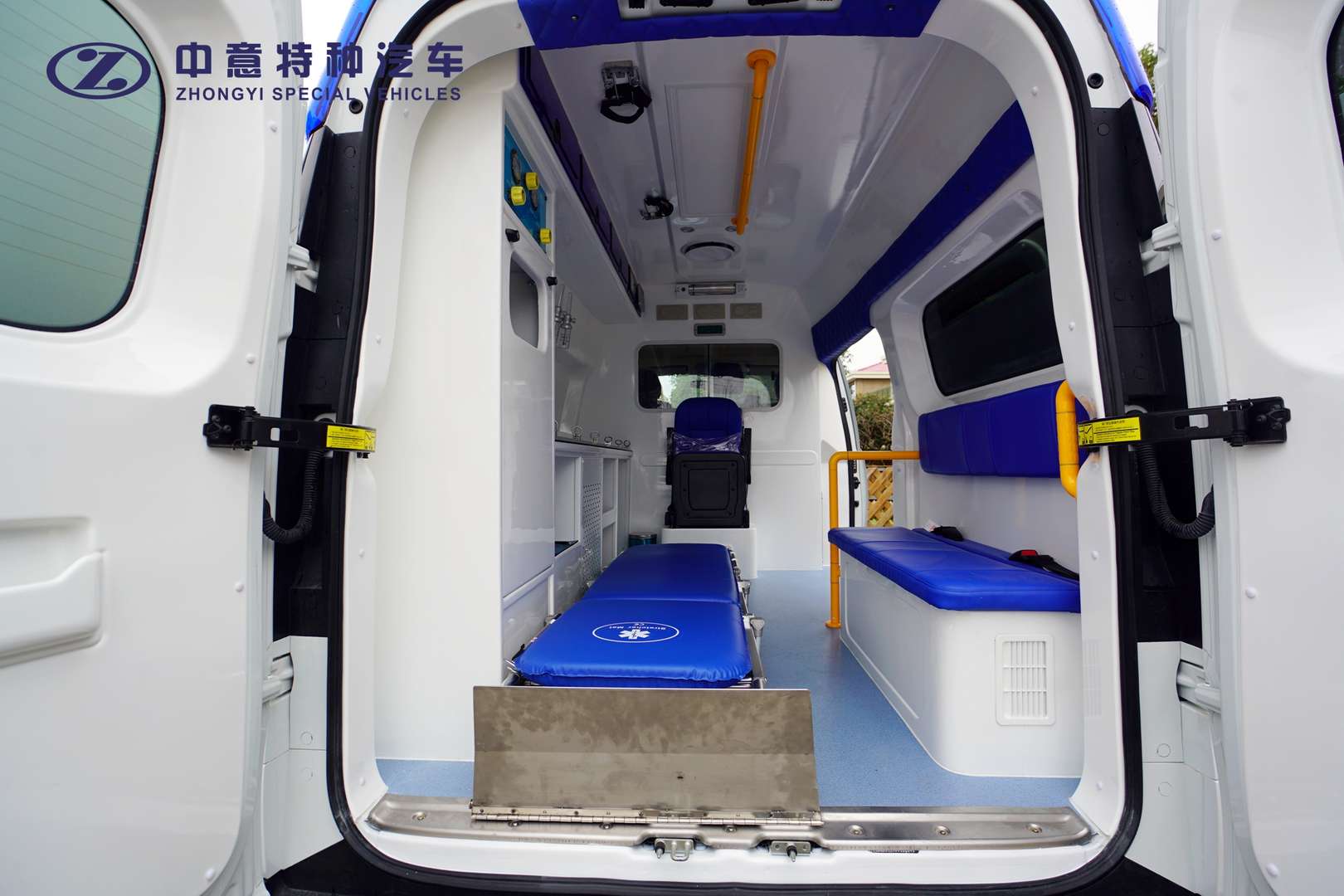 The interior is made of high-molecular materials through molding, which is beautiful, tidy, easy to clean and disinfect. The ambulance room is equipped with medical equipment cabinets, medicine cabinets, stretchers and long backrest seats. It is also provided with high-end medical facilities such as infusion hooks, central oxygen supply systems and sterilization lamps for manifold valves, maximizing the support for medical staff during rescue operations.