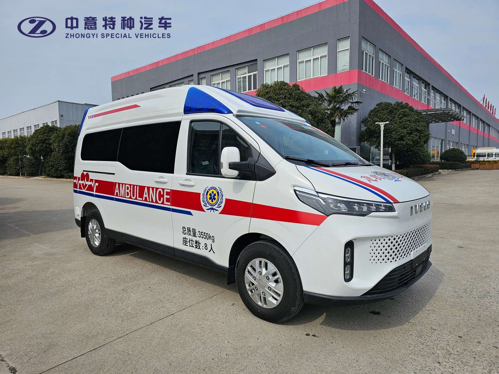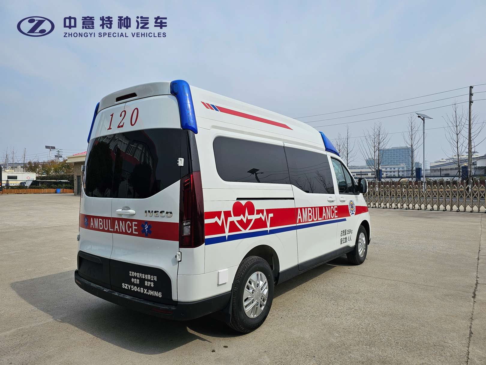 The Zhongyi brand SZY5048XJHN6 type monitoring ambulance is modified by adding an independent body to the new Iveco Polystar NJ6546FDC5C vehicle chassis. This vehicle adopts the most popular exterior design concept in Europe and America. The optimized space is conducive to rescue operations inside the vehicle. Inside the vehicle, the first aid room and the driver’s cabin are separated by a partition. The front and rear independent air conditioning systems achieve air isolation. The optional negative pressure system can effectively treat the air inside the vehicle harmlessly and then discharge it, preventing more people from being infected while effectively ensuring the safety of the driver and passengers.